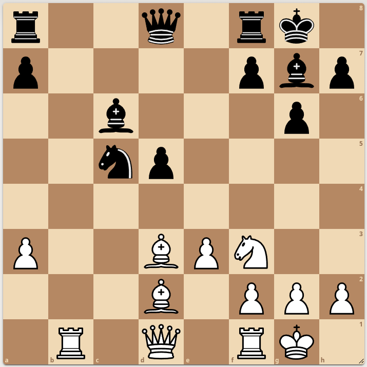 Lb4! spießt den Springer und Turm auf und gewinnt unweigerlich Material. Es ging dann noch spannend weiter – eine kleiner Bericht zu dieser Partie folgt in Kürze.